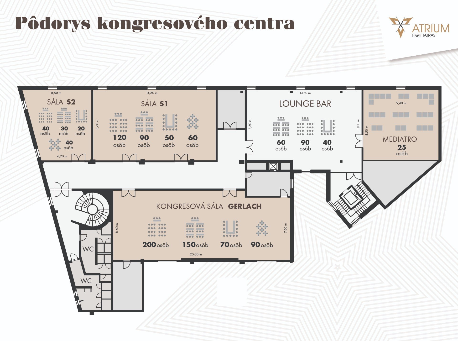 Pôdorys kongresového centra Hotel ATRIUM