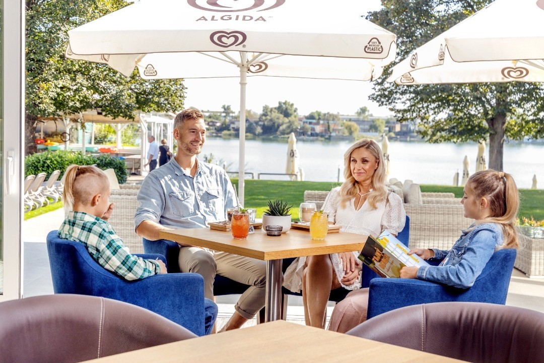 Na súkromnej hotelovej pláži s lehátkami priamo na Slnečných jazerách neďaleko Bratislavy, vás čaká dokonalá letná atmosféra.